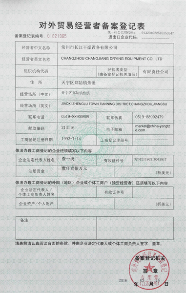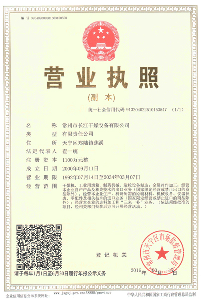 常州市長江幹燥設備(bèi)有限公司是國家幹燥設備定點企(qǐ)業。位於中國常州鄭陸焦溪(xī)工業園區,緊鄰連通滬寧高速橫山橋道口,距市區東環高架僅8KM。公司致力於承接(jiē)大型幹燥技術工程,進行幹燥設備(bèi)設計(jì)、製(zhì)造及銷售;並(bìng)擅長對多糖(táng)類食(shí)品、中(zhōng)藥浸膏、生物製品、化工原料、食品(pǐn)添加劑(jì)等高糖(táng)分、易吸濕的(de)膏(gāo)狀物料的幹燥,年生產各類幹燥(zào)設備超過300台套。
